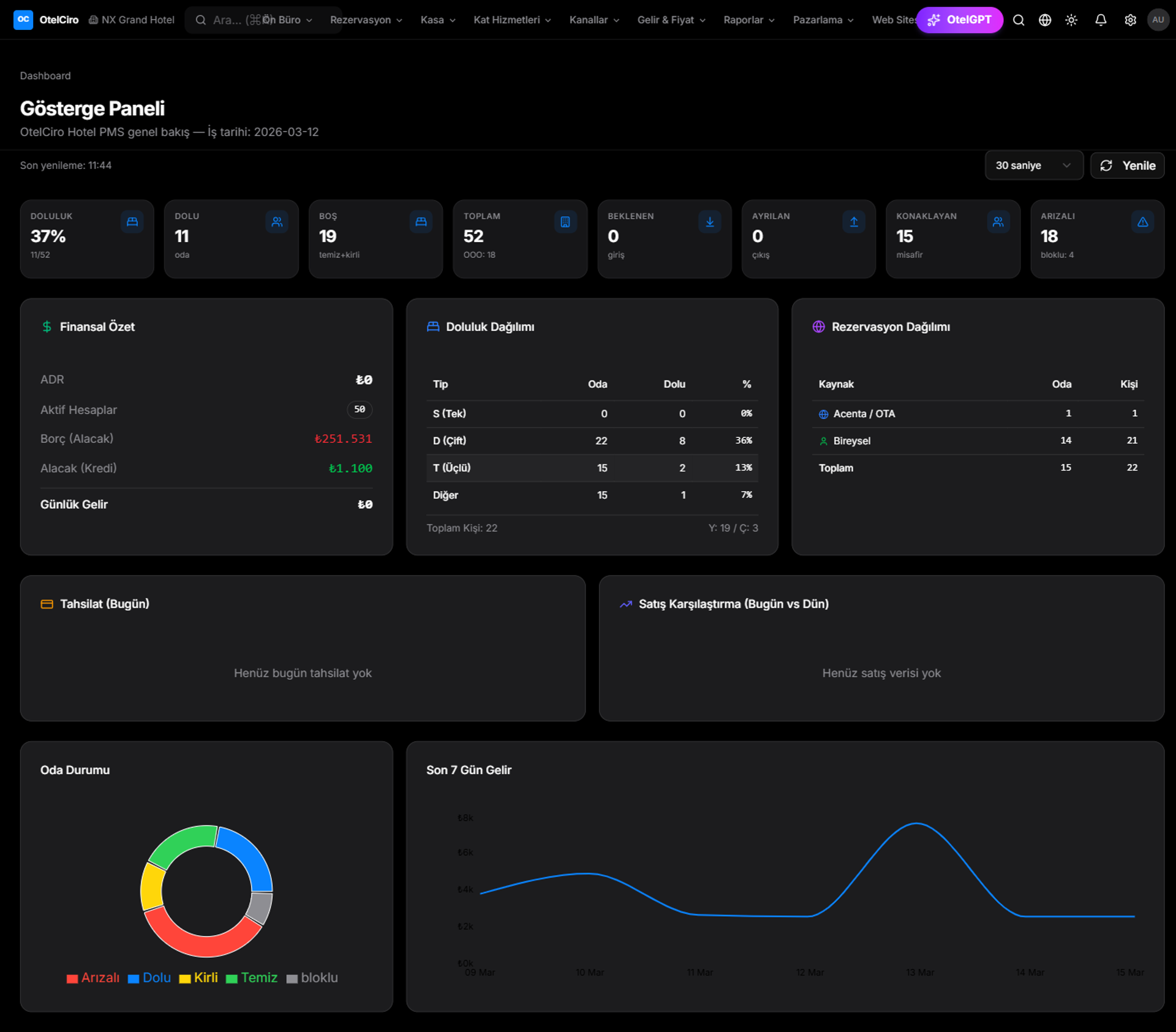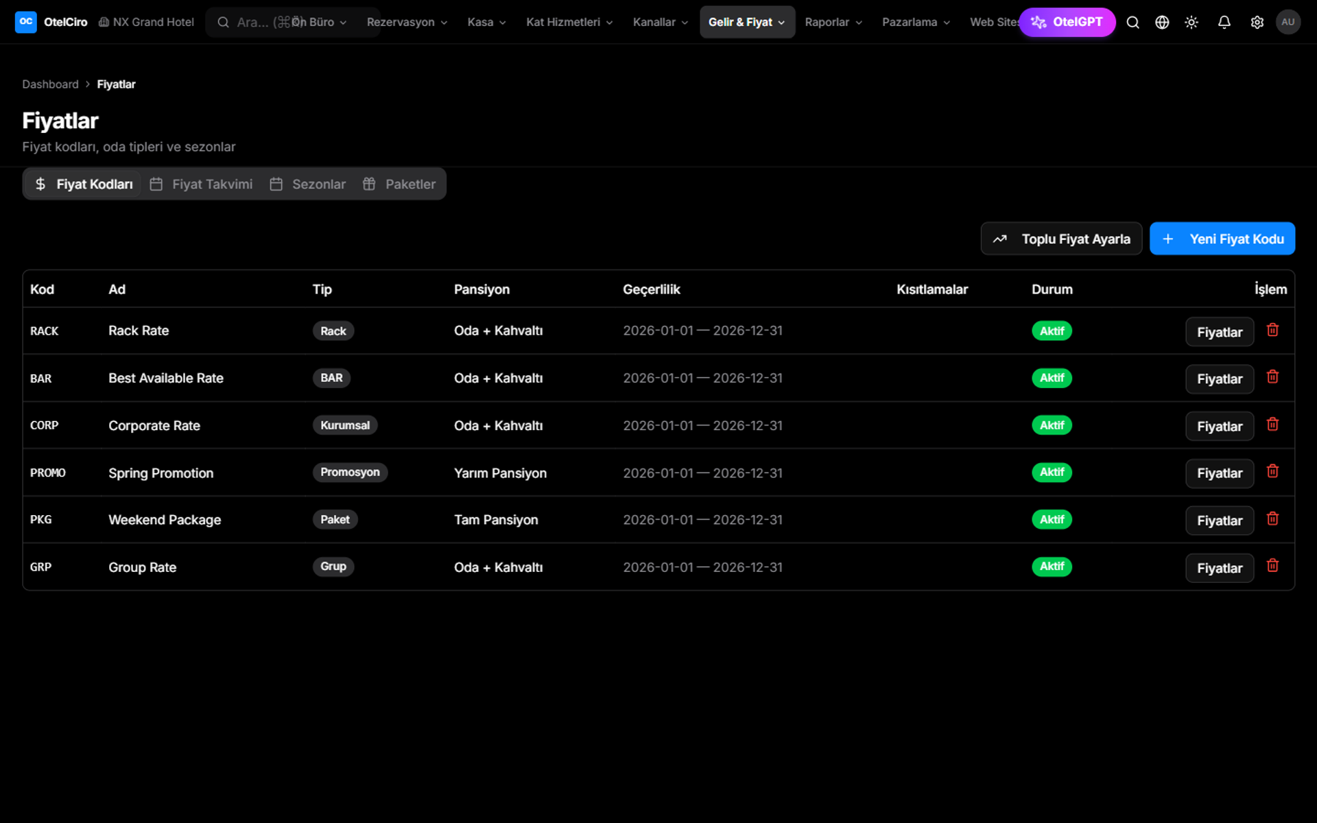 Dinamik fiyatlandırma, kanal yönetimi ve dijital pazarlama stratejileri ile otelinizin gelirini optimize edin. OtelCiro, Türkiye'nin lider otel gelir yönetimi platformudur.