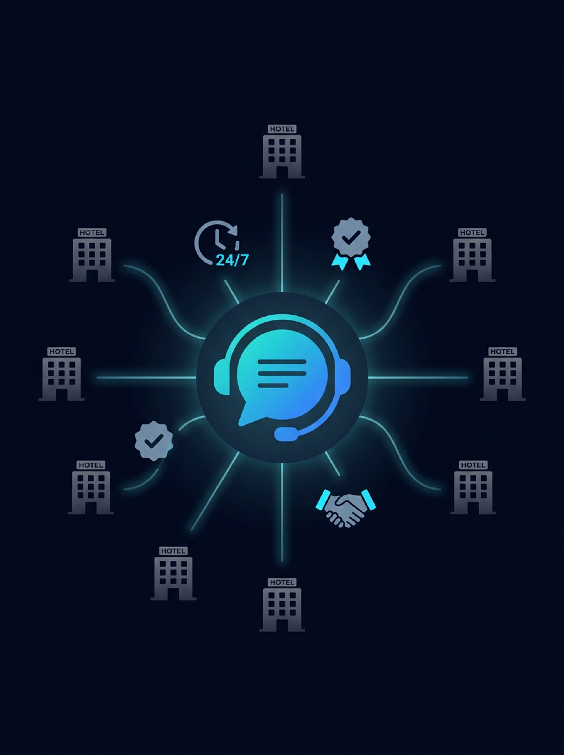 Booking.com'dan ChatGPT'ye, Expedia'dan Google Hotels'a — 60+ kanal ve platform ile sorunsuz entegrasyon. Fiyat, müsaitlik ve içerik senkronizasyonu tek merkezden.